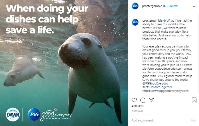 For instance, if you visit the Procter & Gamble Instagram page, you will see that most of their posts show their active participation in the social causes they are engaged in: