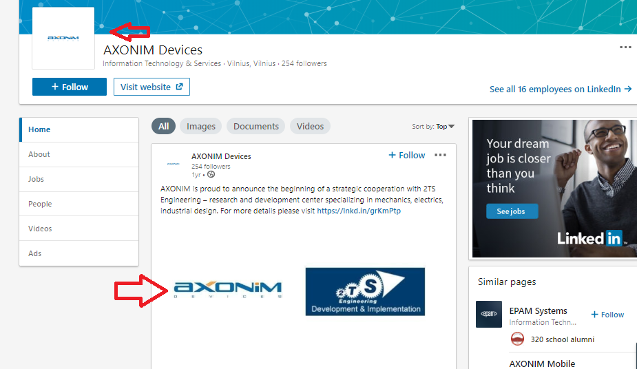 For instance, Axonim, an online electronic design service, use their logo to build their online presence on their website, as well as on their LinkedIn profiles Axonim Devices and Axonim Mobile Apps, where they have their target audience: