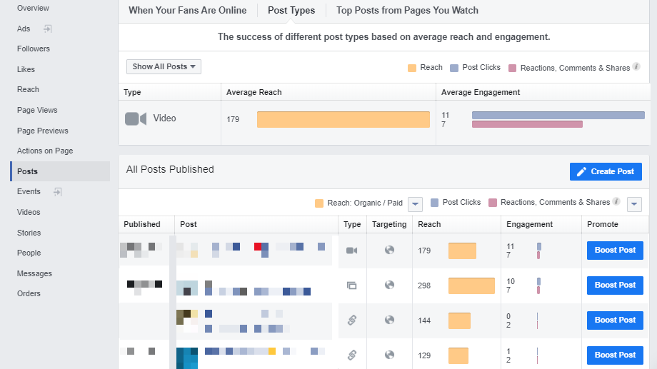 Here you can see how this data looks like regarding the overall content type preferences, as well as the engagement for each post: